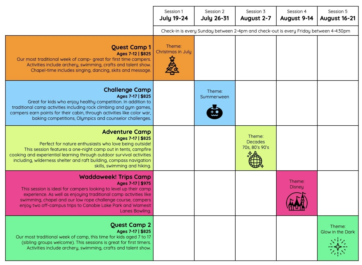 Check out our camp schedule below and start planning your summer!