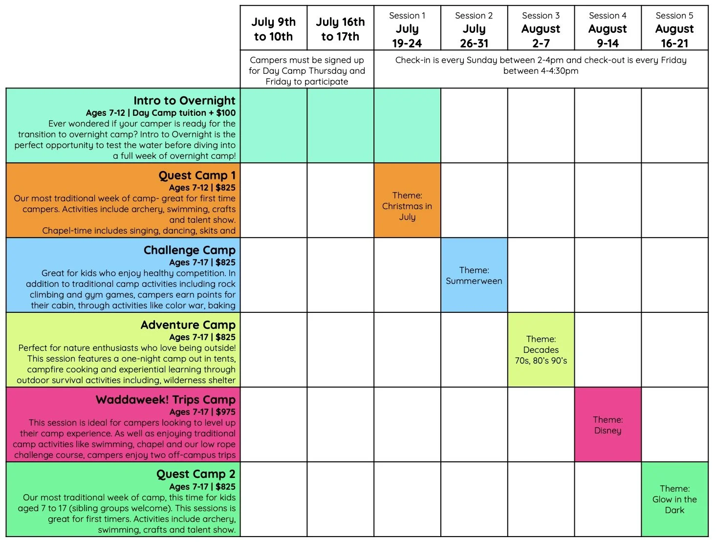Step 1: decide which session your camper wants to attend; noting the cost of tuition, the deposit amount, and how much you can contribute toward the cost of camp.